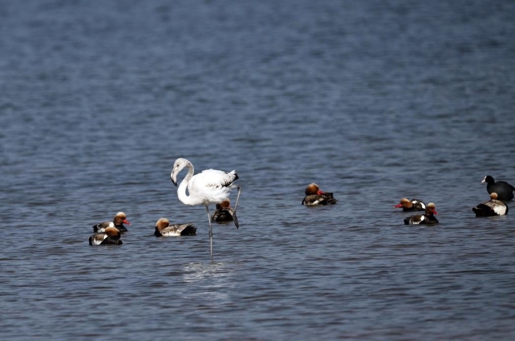 大紅鸛又稱大火烈鳥,主要生活在鹽水、淡水棲息地,喜歡結(jié)群生活,主要分布于熱帶、亞熱帶地區(qū),已被列入國家保護(hù)的有益的或者有重要經(jīng)濟(jì)、科學(xué)研究價(jià)值的陸生野生動(dòng)物名錄。陳峰說:“大紅鸛在烏梁素海屬于‘迷鳥’,實(shí)屬罕見。我們已安排專人在湖區(qū)周邊實(shí)行重點(diǎn)巡查,防止人類活動(dòng)干擾大紅鸛的棲息,給它營造出適宜、安全的棲息環(huán)境。”