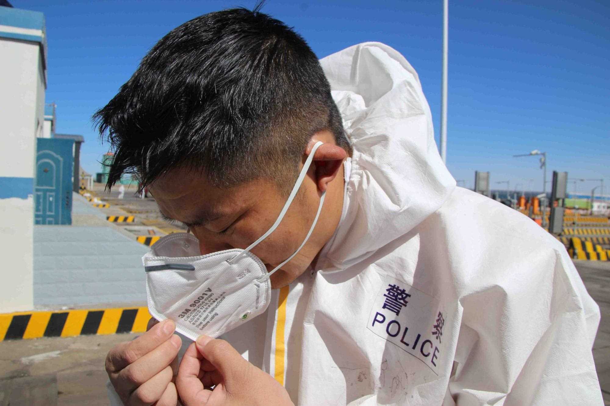 近期策克口岸的溫度持續(xù)增加至30攝氏度以上,而在通行的重型卡車,溫度還要更高,下午15點溫度計地表溫度測量最高可達40攝氏度。這無疑讓的查驗工作更為繁重。更重要的是,由于疫情影響每名民警在查驗期間都要穿上防護服,在高溫下,由于防護服是密閉的,防護服里仿佛成了蒸箱,用不了十分鐘,民警就會汗流浹背,防護服黏在身上又粘又癢,一班勤務近2個小時,必須要等過了勤務才能休息,而民警還要完成車體的查驗工作,包括工具箱、馬槽等處,絲毫不敢馬虎。