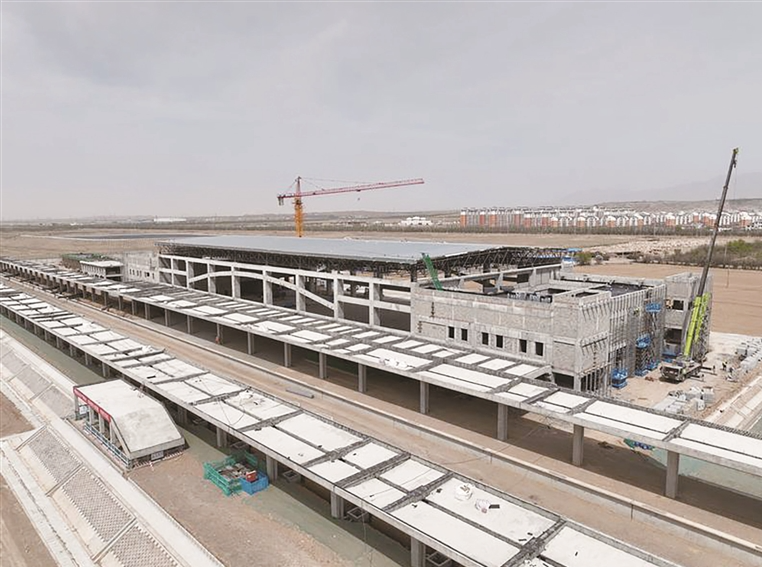 正在建設(shè)中的包銀高鐵銀巴支線巴彥浩特站?! ?/p>