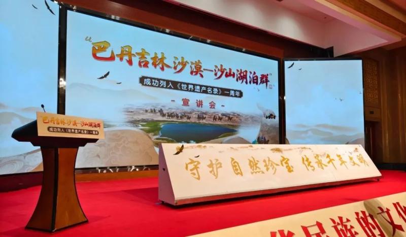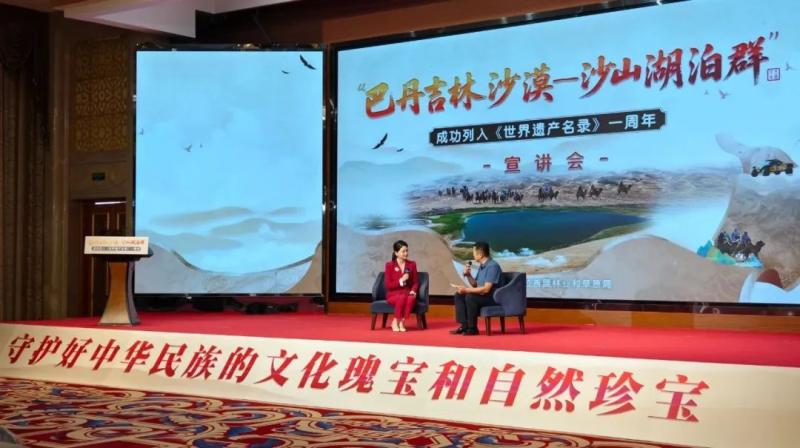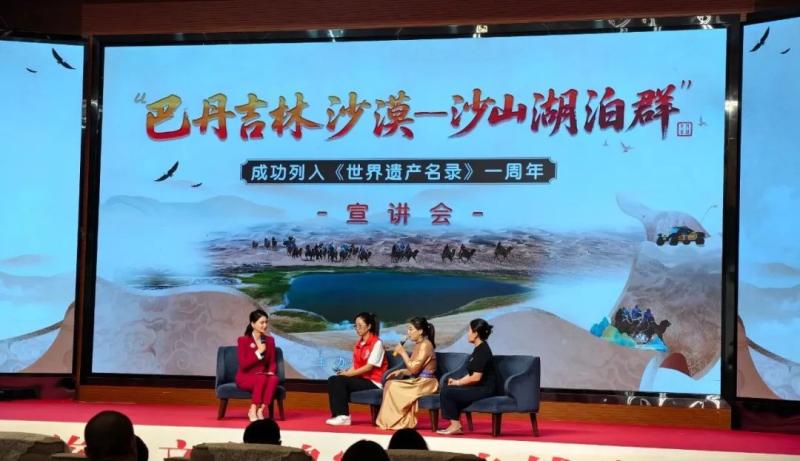 宣講會上,知名專家、一線工作者、志愿服務隊代表等宣講嘉賓和文旅從業(yè)者齊聚一堂,通過主題宣講、人物訪談的形式,共同回顧了“巴丹吉林沙漠—沙山湖泊群”申遺成功一周年以來的保護成果,立體展現(xiàn)了巴丹吉林沙漠的生態(tài)價值、保護實踐與時代意義,探討這片世界自然遺產(chǎn)的未來發(fā)展之路。