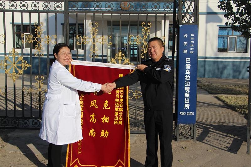 近日,白音烏拉衛(wèi)生院李院長(zhǎng)到巴音烏拉邊境派出所,將一面印有“風(fēng)危相助、警風(fēng)高尚”的錦旗送到民警手中,感謝派出所民警長(zhǎng)期以來(lái)對(duì)駐地衛(wèi)生院和居民的幫助和關(guān)愛(ài)。