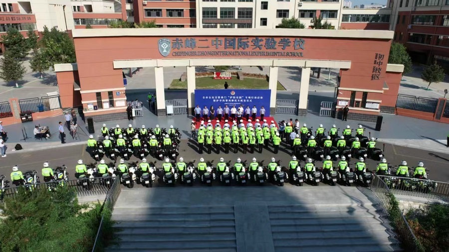 北疆新聞呼和浩特9約3日電(記者 楊凈毓)8月30日,赤峰市公安局交管支隊(duì)在赤峰二中國(guó)際實(shí)驗(yàn)學(xué)校門(mén)前,舉行全市公安交管部門(mén)“護(hù)校安園”專(zhuān)項(xiàng)行動(dòng)啟動(dòng)暨護(hù)學(xué)崗警用摩托車(chē)配發(fā)儀式。