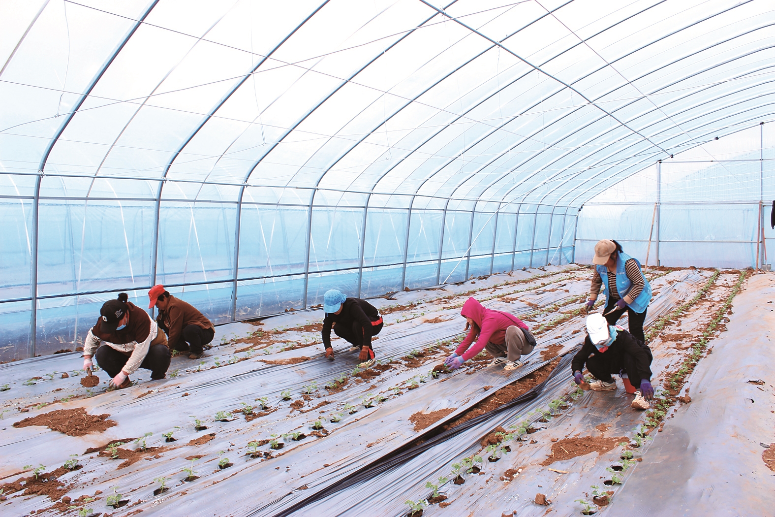初夏時(shí)節(jié),走進(jìn)寧城縣八里罕鎮(zhèn)七家營(yíng)子村新建的冷棚內(nèi),農(nóng)戶們正搶抓農(nóng)時(shí)栽植西瓜秧苗。