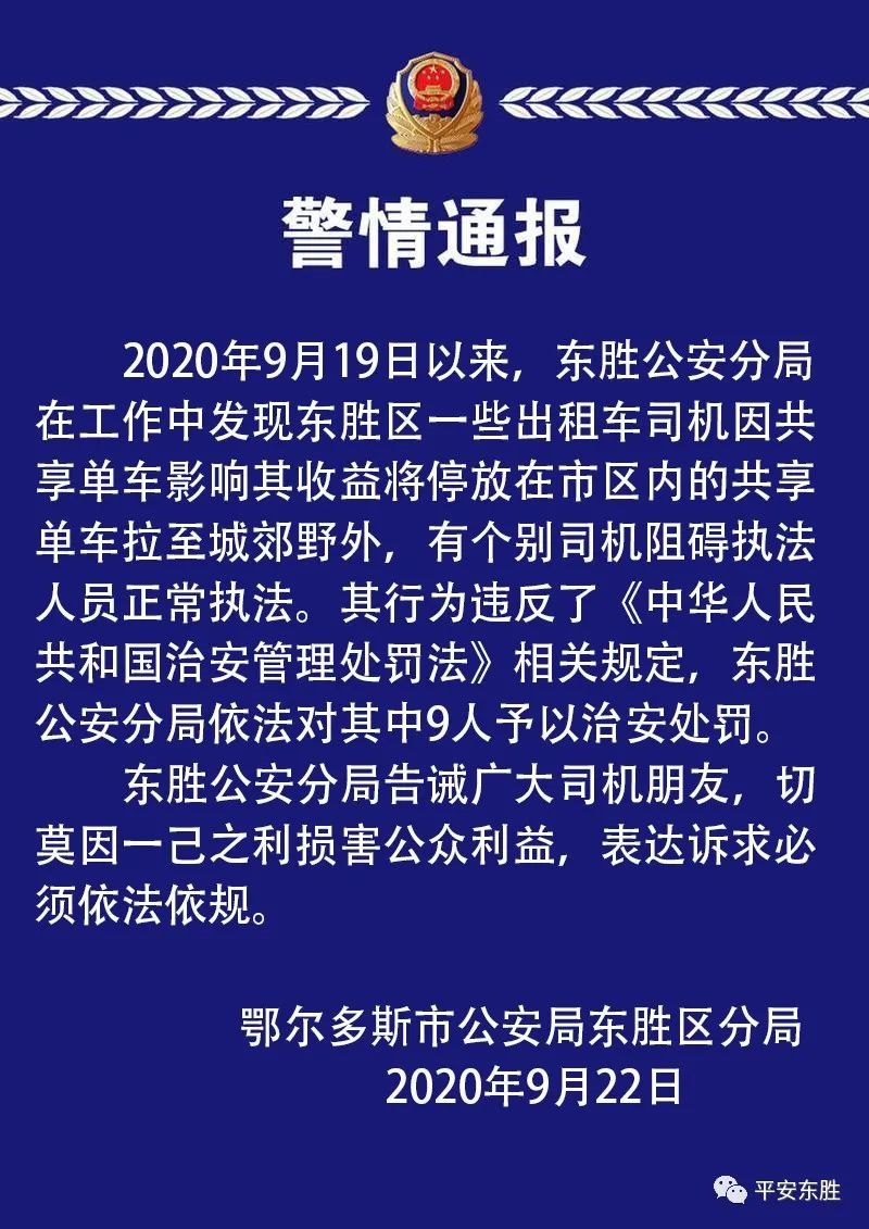 私自將共享單車(chē)?yán)两纪?9名出租車(chē)司機(jī)被處罰