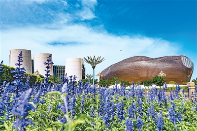 從外觀上來看,斜置的墻壁、反重力的扭曲線條、玻璃的通透與金屬的冷峻相結(jié)合等現(xiàn)代建筑手段,在七大建筑得到了恰如其分的展現(xiàn)。其內(nèi)部空間結(jié)構(gòu)同樣值得稱贊。在博物館,記者走遍各個展區(qū),從樓梯、窗戶、展區(qū)來看,其空間結(jié)構(gòu)與功能布局是美觀和實(shí)用的完美融合。在圖書館,記者發(fā)現(xiàn),遠(yuǎn)山框進(jìn)窗戶,綠色環(huán)繞四周。在這里,功能性的光芒與美學(xué)性的溫度和諧共生。