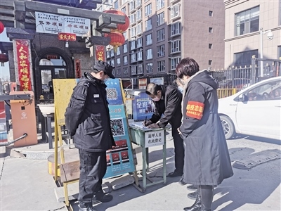 記者跟隨工作人員來(lái)到轄區(qū)地新街坊小區(qū),幾名社區(qū)工作人員正在小區(qū)門(mén)口負(fù)責(zé)疫情防控,“您好!請(qǐng)問(wèn)您去哪棟樓?請(qǐng)下車登記信息。謝謝!”“請(qǐng)居民佩戴好口罩”……針對(duì)出入小區(qū)的人員,社區(qū)工作人員都一一仔細(xì)核查,宣傳防疫信息?!按汗?jié)長(zhǎng)假過(guò)后,很多事都堆到今天了,所以格外忙?!卑⒗票甭飞鐓^(qū)黨總支書(shū)記王海瓊說(shuō),阿拉善北路社區(qū)很多網(wǎng)格員都放棄了與家人團(tuán)聚的時(shí)間,主動(dòng)下沉到各個(gè)小區(qū)開(kāi)展疫情防控工作,實(shí)行24小時(shí)輪崗制,做好外地返呼人員登記和掃碼工作,保證轄區(qū)防控安全。除此之外,還積極參與禁燃煙花爆竹、垃圾分類宣傳等工作,讓政策落到實(shí)處。