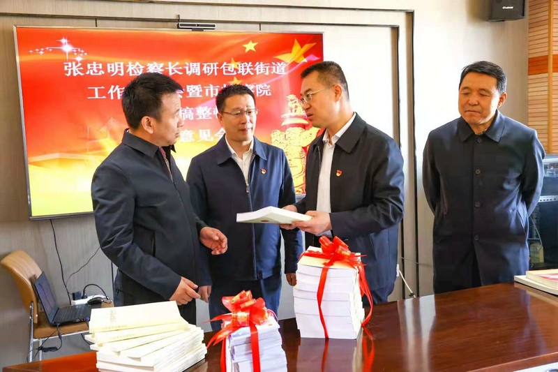 調(diào)研期間,市檢察院還向街道贈(zèng)送了蒙漢雙語(yǔ)版《民法典》、黨史學(xué)習(xí)教育等書(shū)籍資料。