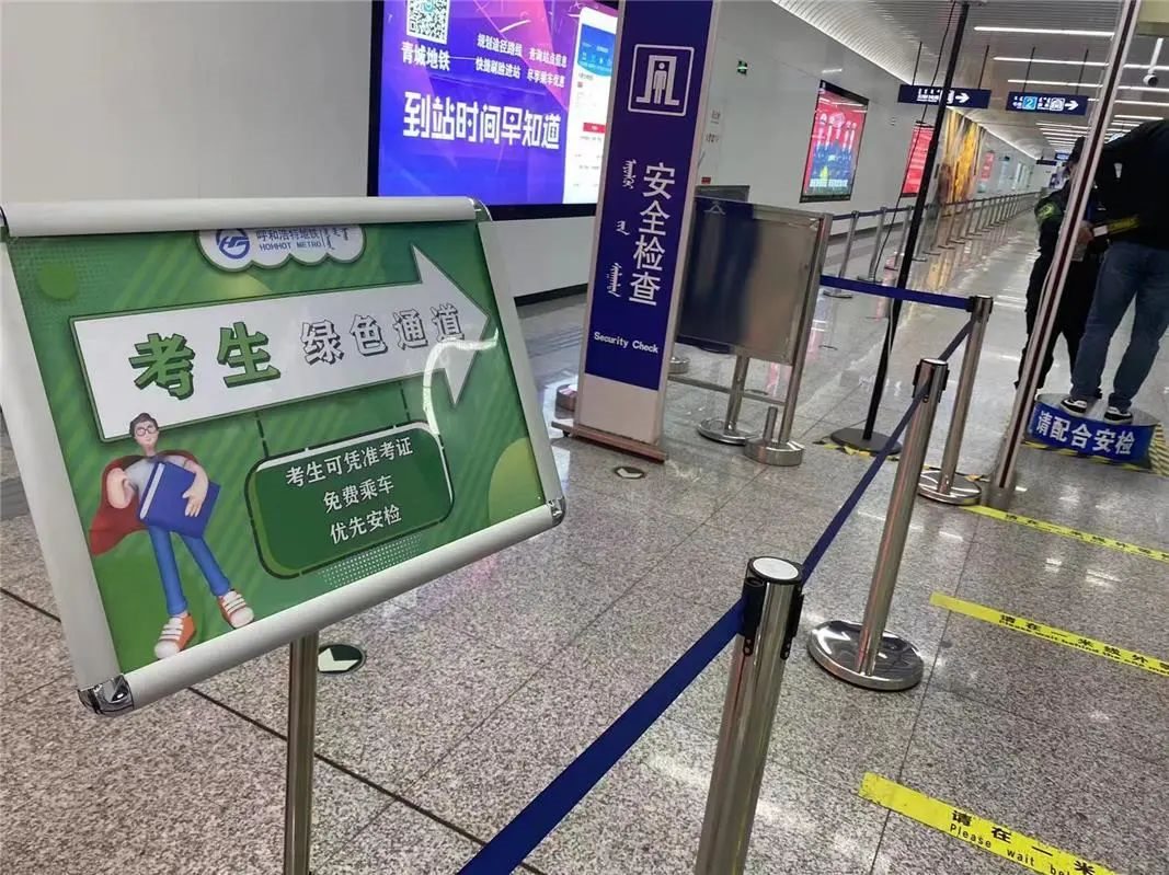 6月7日至9日,呼和浩特地鐵開展“追夢有你,護(hù)航有我”高考助力活動(dòng),在44座地鐵站點(diǎn)設(shè)置“考生綠色通道”,考生可以優(yōu)先安檢、優(yōu)先進(jìn)站免費(fèi)乘坐地鐵,工作人員全力以赴做好防疫措施,保障考生乘車更放心、赴考更舒心。