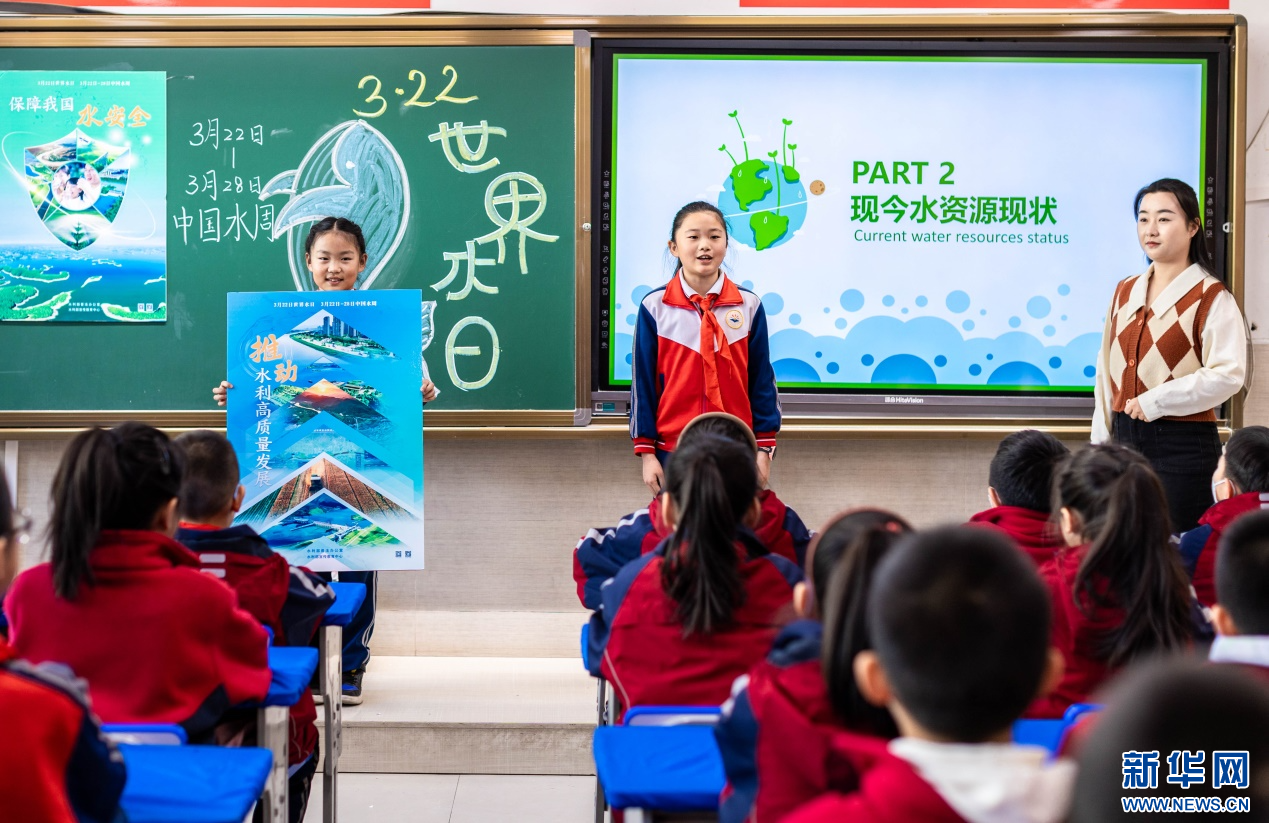 ??3月20日,呼和浩特市玉泉區(qū)石東路小學學生在班隊會上分享節(jié)水小妙招。新華網(wǎng)發(fā)(丁根厚 攝)