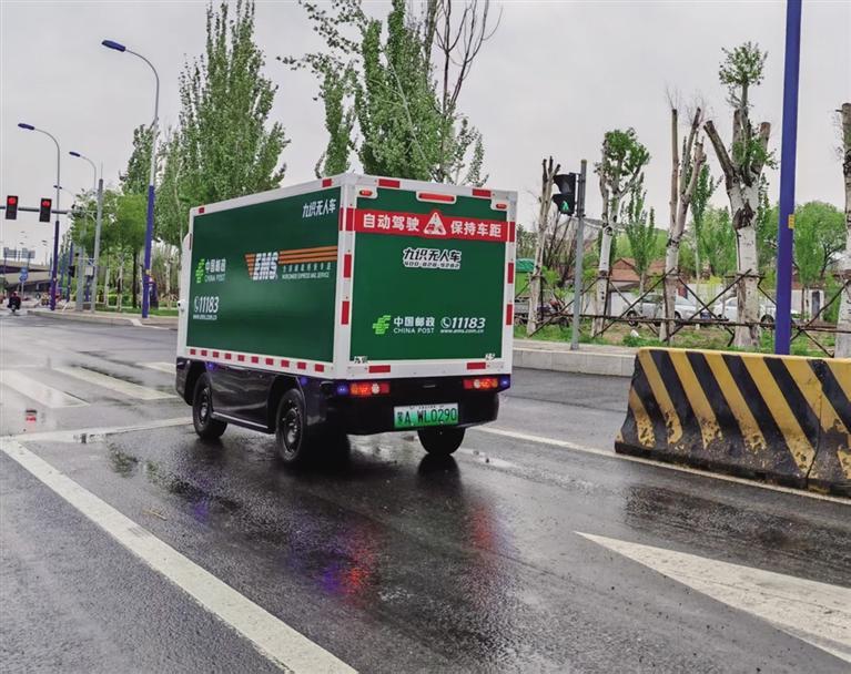打開專屬App,掃碼開啟車廂,放入快件,關(guān)車廂,發(fā)送指令,無人快遞車上路了。這是記者5月9日在呼和浩特市郵政分公司(以下簡(jiǎn)稱“公司”)寄遞事業(yè)部直投中心看到的一幕。