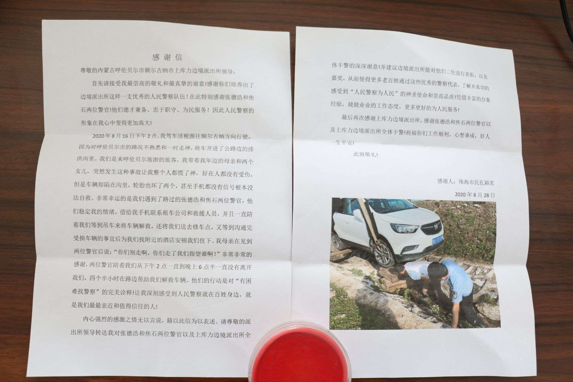 9月2日,印有“盡職盡責(zé)熱心為民,失而復(fù)得溫暖人心”的錦旗從北京郵寄到室韋邊境派出所;9月2日,一面印有“情系百姓,為民解憂”的錦旗被群眾送到恩和邊境派出所民警手中;9月3日,印有“人民衛(wèi)士,一心為民”的錦旗送到莫爾道嘎邊境派出所民警手中;9月4日,上庫(kù)力邊境派出所收到了從廣東珠江郵來了印有“人民警察為人民,服務(wù)群眾解民憂”的錦旗和一封感謝信...