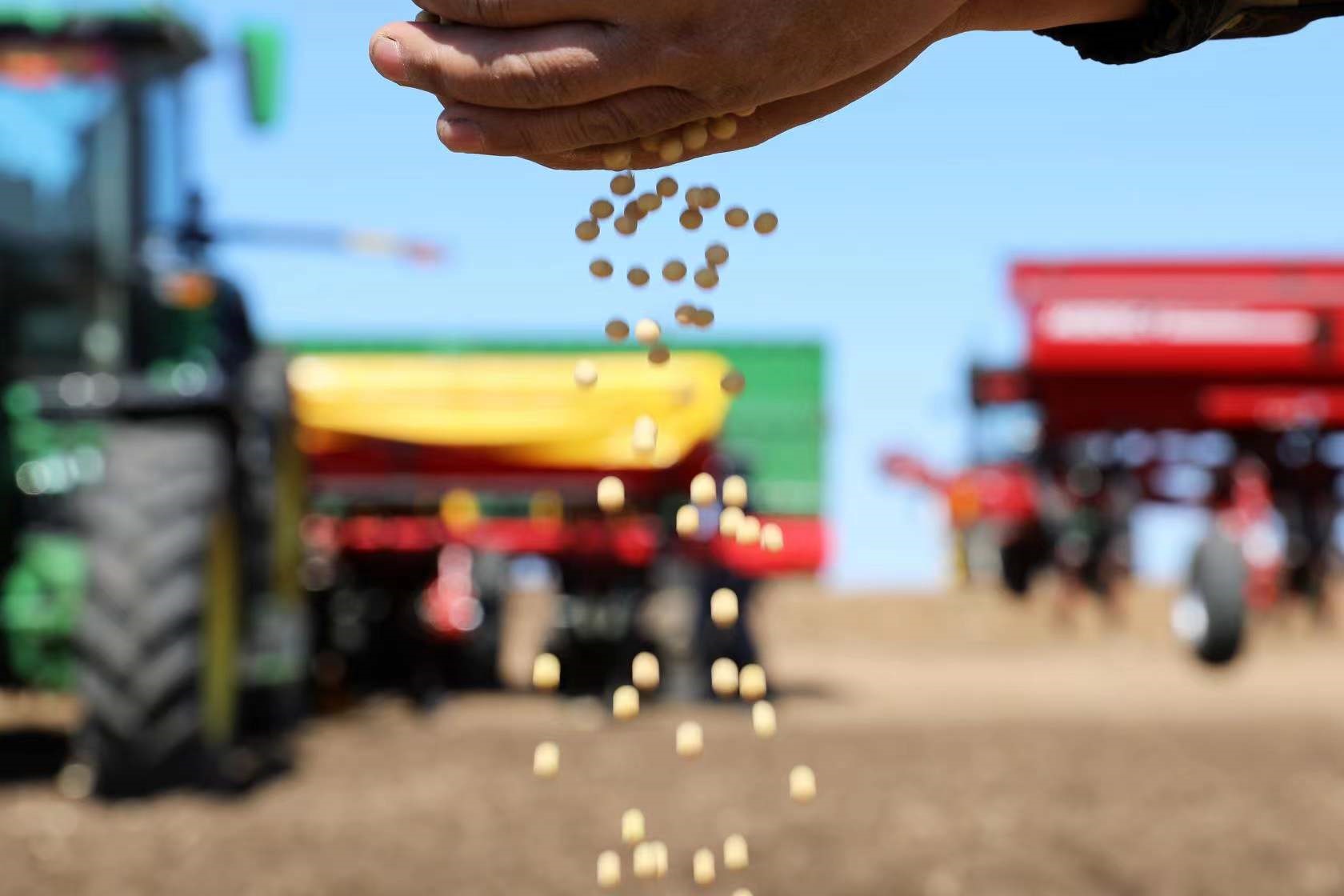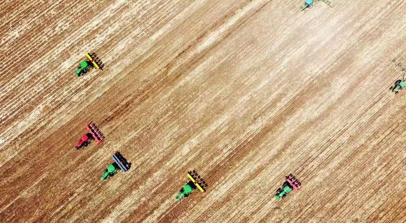 2022年4月28日,農(nóng)機手駕駛農(nóng)機在內(nèi)蒙古自治區(qū)扎蘭屯市呼倫貝爾農(nóng)墾大河灣農(nóng)牧場公司田間進行春耕播種。2022年4月28日,位于內(nèi)蒙古自治區(qū)呼倫貝爾市扎蘭屯市的呼倫貝爾農(nóng)墾大河灣農(nóng)牧場公司春播開犁。該公司先后引進國際高端先進大型農(nóng)機設備,通過北斗導航、無人駕駛等現(xiàn)代科技應用,積極打造智慧農(nóng)業(yè)發(fā)展新模式,全面提高作業(yè)效率和質量,促進農(nóng)業(yè)增產(chǎn)增收。(韓冷 田林鑫)