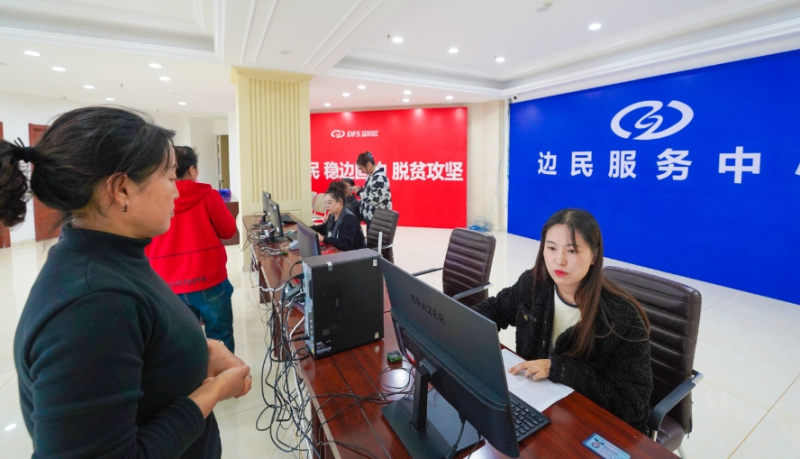 圖為邊民在滿(mǎn)洲里中俄互市貿(mào)易區(qū)進(jìn)行交易申報(bào)。