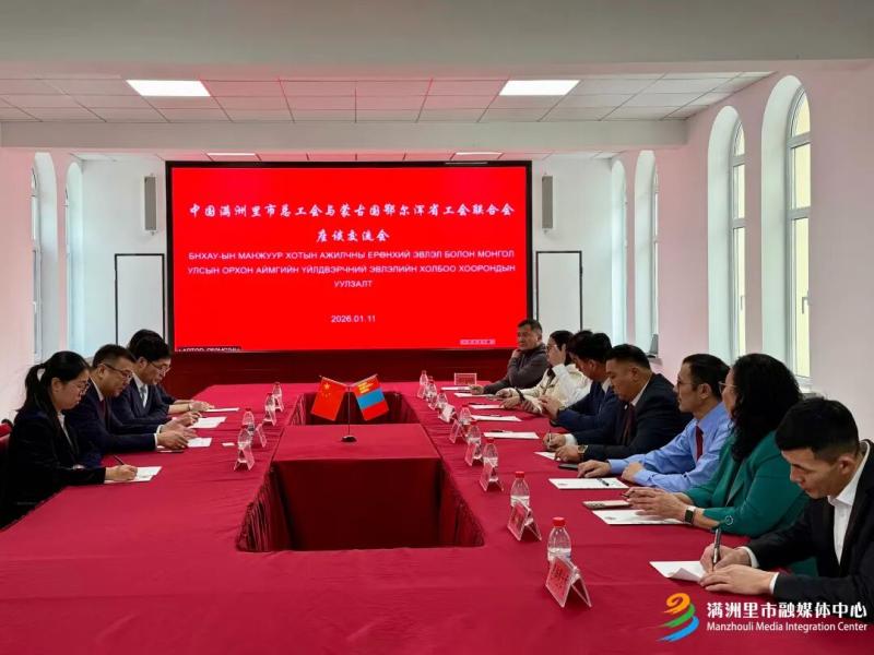 1月11日,滿洲里市總工會與蒙古國鄂爾渾省工會聯合會座談交流會舉行。雙方圍繞工會工作經驗互鑒、跨境職工服務合作等議題深入交流,共話友誼、共謀發(fā)展。