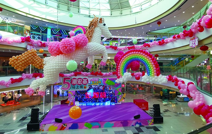 走進(jìn)集寧區(qū)萬(wàn)達(dá)廣場(chǎng),一樓東門的跨年倒計(jì)時(shí)展板格外醒目,“約定,今年要和我愛(ài)的人一起跨年”的字樣搭配喜慶的紅色背景,將跨年的儀式感拉滿。商場(chǎng)內(nèi)部的布置巧思盡顯,中庭位置,巨型氣球打造的白色小馬造型栩栩如生,粉色、橙色氣球簇?fù)碜笥?,一旁的彩虹氣球裝飾蜿蜒舒展,與各品牌門前統(tǒng)一的彩色氣球相映成趣,簡(jiǎn)約的裝飾搭配讓節(jié)日氛圍愈發(fā)濃郁。