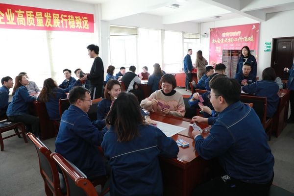 此次活動(dòng)分為棋牌比賽、燈籠DIY、吃元宵等幾個(gè)環(huán)節(jié)。打撲克牌活動(dòng)現(xiàn)場,選手們迅速進(jìn)入狀態(tài)。大家配合默契,沉著應(yīng)戰(zhàn),見招拆招,參與選手情緒高昂,積極踴躍,旁邊加油助威的人員各個(gè)興致昂揚(yáng)。鼓聲、笑聲、吶喊聲,此起彼伏,更是把文化活動(dòng)的氣氛推向高潮。