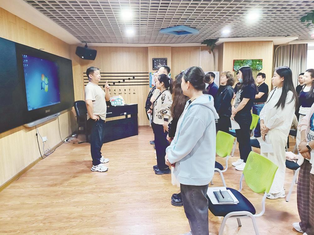 課后,老師崔辰赫主動向?qū)W員們了解課程體驗感受,詢問他們的意見,在今后的課程上做出調(diào)整?!拔沂菫鹾?茖W(xué)技術(shù)館的聲樂老師,‘青年夜校’開課,讓我給青年人上課,我特別高興。以前,我大多是教孩子們聲樂或者給一些團體做聲樂輔導(dǎo),給一個班的青年人上課還是第一次,這種體驗很棒,一堂課下來充滿了激情活力,我希望繼續(xù)上課,與青年人一起提升自我?!贝蕹胶照f。