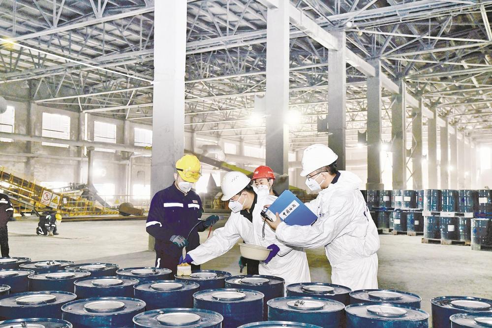近日,烏海海關(guān)關(guān)員對內(nèi)蒙古宜化化工有限公司出口的化工產(chǎn)品進(jìn)行檢查,不久后,這些產(chǎn)品將通過陸海聯(lián)運(yùn)銷往東南亞市場。(王超 攝)