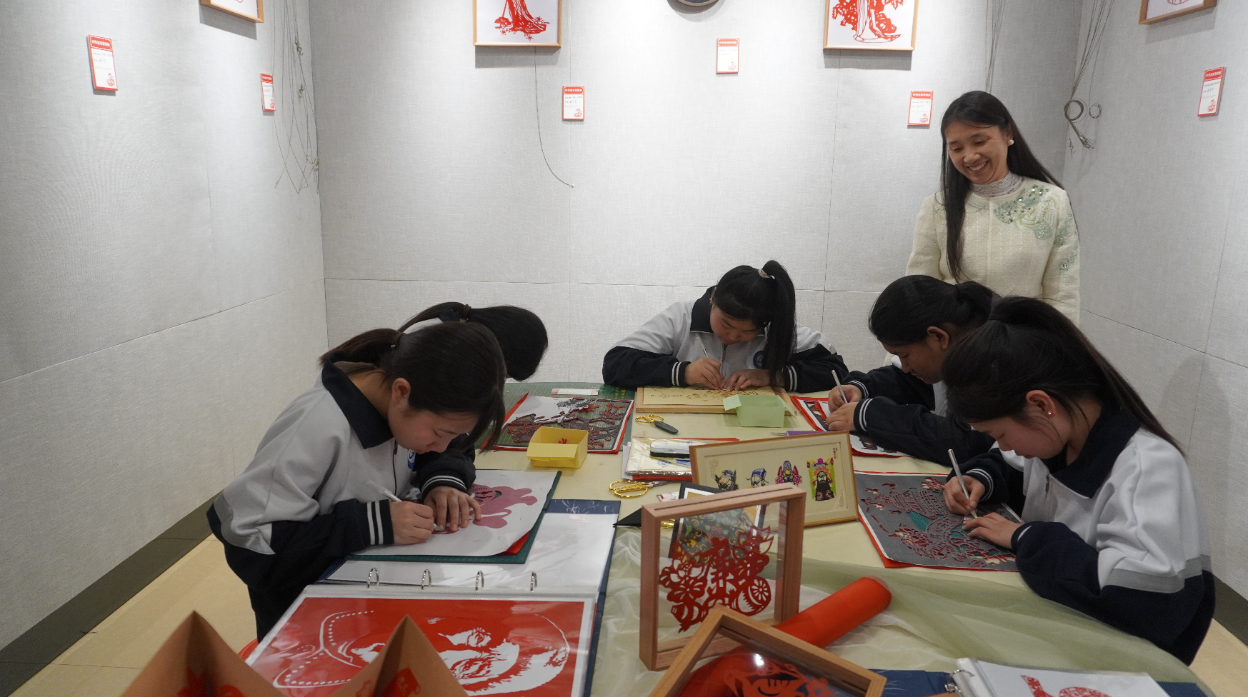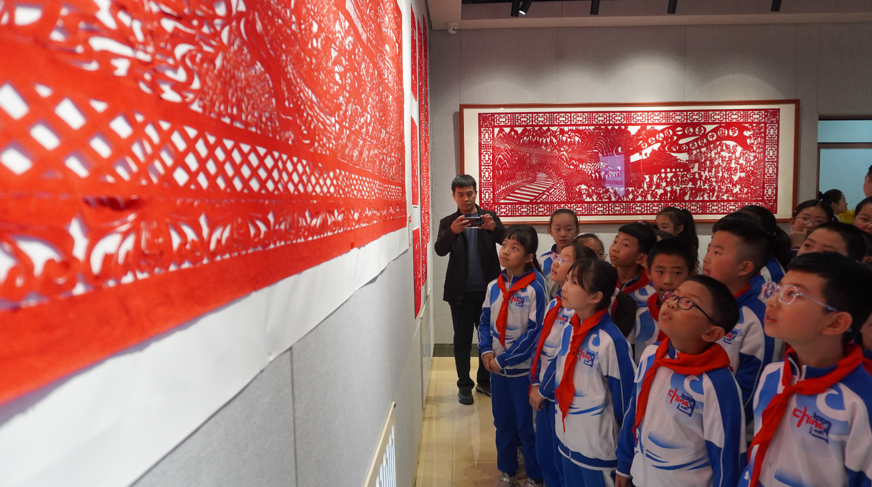 此次展覽的剪紙作品內(nèi)容豐富、制作精致、形式多樣,在傳承傳統(tǒng)剪紙藝術(shù)的同時(shí),注入了新時(shí)代的元素特征,以剪紙藝術(shù)詮釋烏蘭浩特市自然風(fēng)物、傳統(tǒng)建筑與歷史文化之美,展現(xiàn)出剪紙技藝在傳承與發(fā)展中的無(wú)限魅力。觀眾不僅可以近距離感受剪紙的藝術(shù)魅力,還可以參與剪紙,感受中國(guó)傳統(tǒng)文化的博大精深?! ?/p>