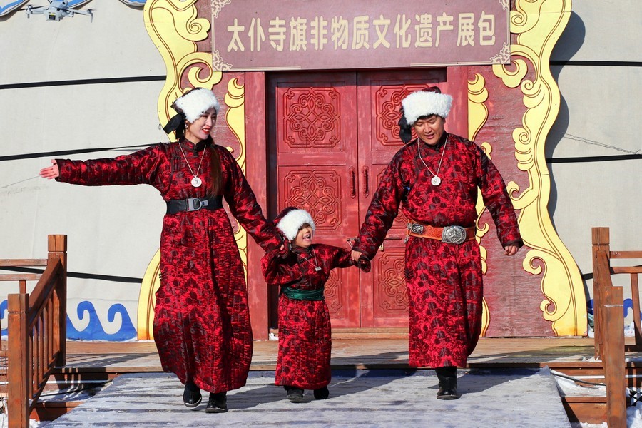 冬季察哈爾民族服飾比賽中,來自貢寶拉格蘇木各嘎查的牧民身著鮮艷的民族服飾依次出場,展現(xiàn)察哈爾傳統(tǒng)服飾的獨(dú)特魅力和文化內(nèi)涵,助力北疆文化的傳承和弘揚(yáng)。