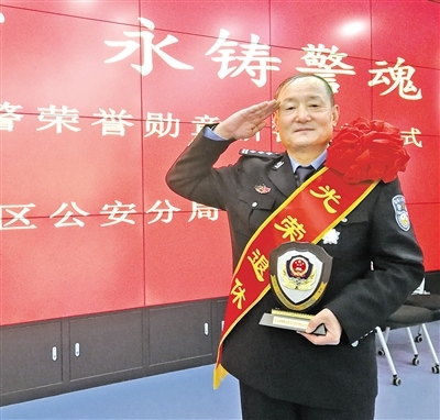 1月8日,在首個中國人民警察節(jié)到來之際,呼和浩特市玉泉區(qū)公安分局舉行“不忘初心 永鑄警魂”——授予退休民警榮譽勛章和新警入警宣誓儀式。今年60歲的楊建恒神采飛揚、豪情依舊,當(dāng)他身著警服、步履鏗鏘地接過退休民警榮譽勛章時,如獲至寶。