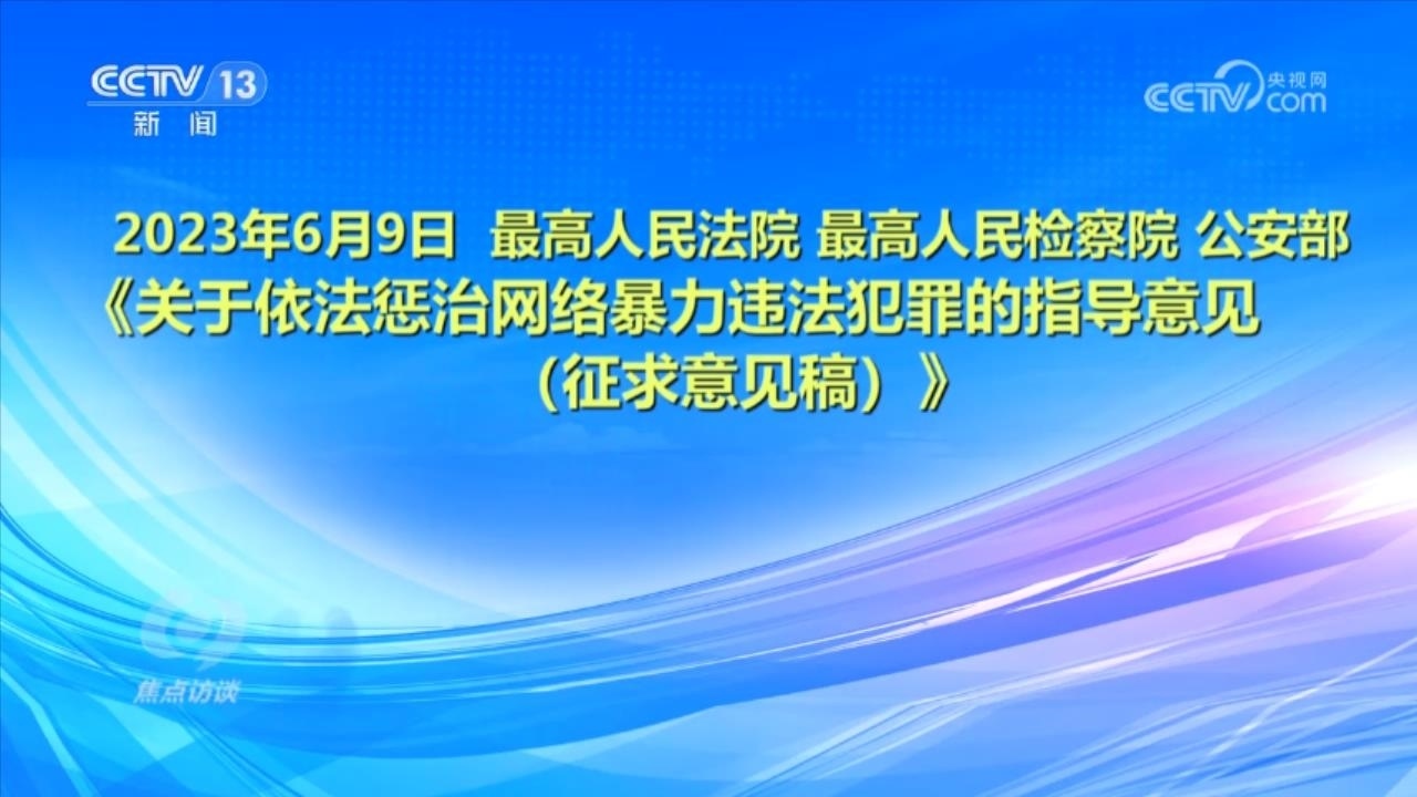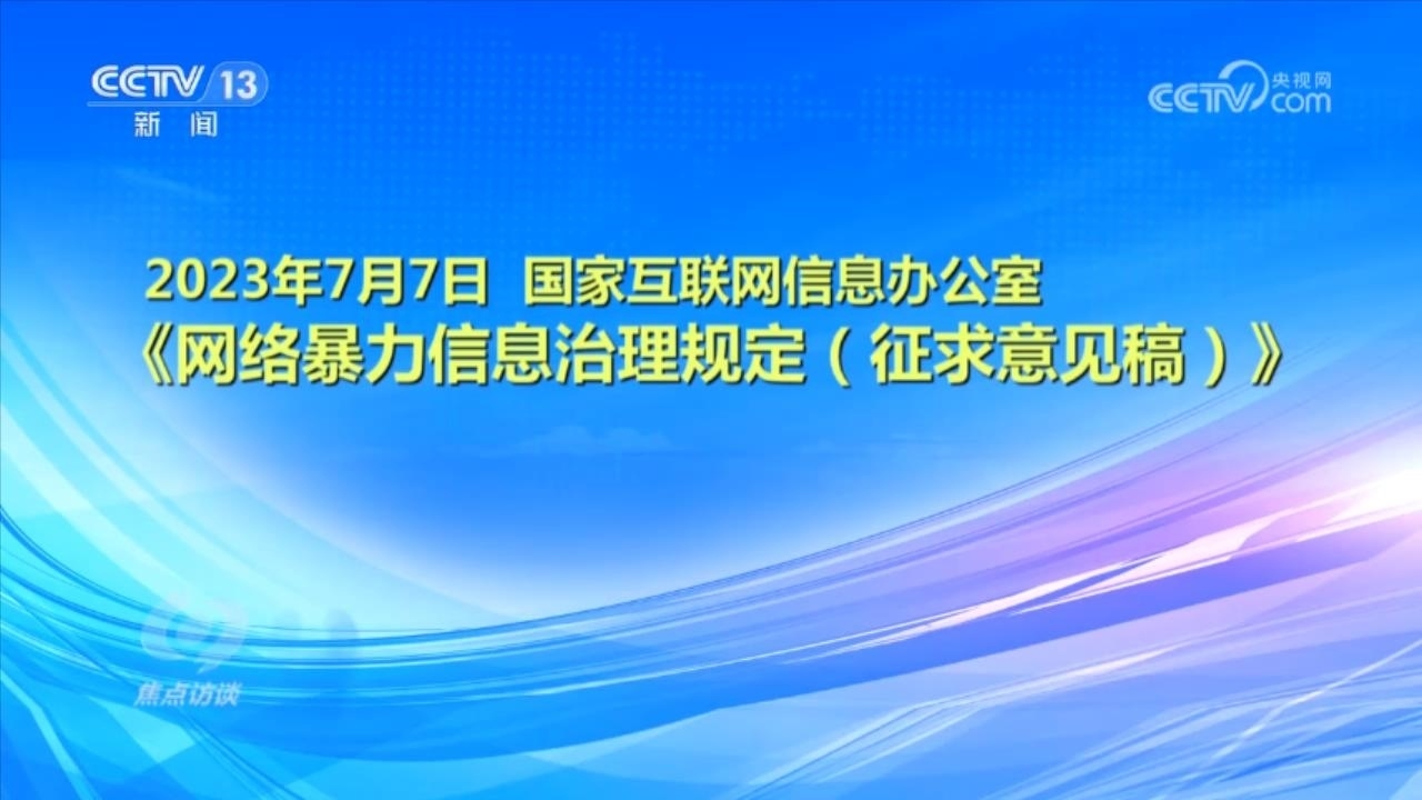 央視網消息(焦點訪談):俗話說“舌上有龍泉,殺人不見血”。網絡暴力不同于現實中的拳腳相加,但是這些在網絡空間中用文字、圖片等方式進行的傷害和侮辱,一樣可以對當事人的現實生活產生惡劣的影響,讓當事人的心靈“流血”。在傷害當事人的同時,網絡暴力行為也嚴重污染了互聯(lián)網環(huán)境,影響社會和諧穩(wěn)定。近日,國家互聯(lián)網信息辦公室起草了《網絡暴力信息治理規(guī)定(征求意見稿)》,向社會公開征求意見;同樣是針對網絡暴力,在6月,最高人民法院、最高人民檢察院、公安部起草了《關于依法懲治網絡暴力違法犯罪的指導意見(征求意見稿)》,面向社會公開征求意見。治理網絡暴力這顆“毒瘤”,營造良好生態(tài)勢在必行。