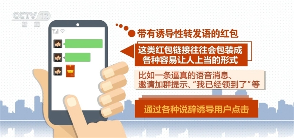 央視網(wǎng)消息:過(guò)年期間搶紅包“拼手速”成為一種新玩法。但一些不法分子卻打起了壞主意,制造了一些假紅包,企圖騙取錢財(cái)。公安機(jī)關(guān)提醒,如果看到這6種微信紅包千萬(wàn)別領(lǐng)!