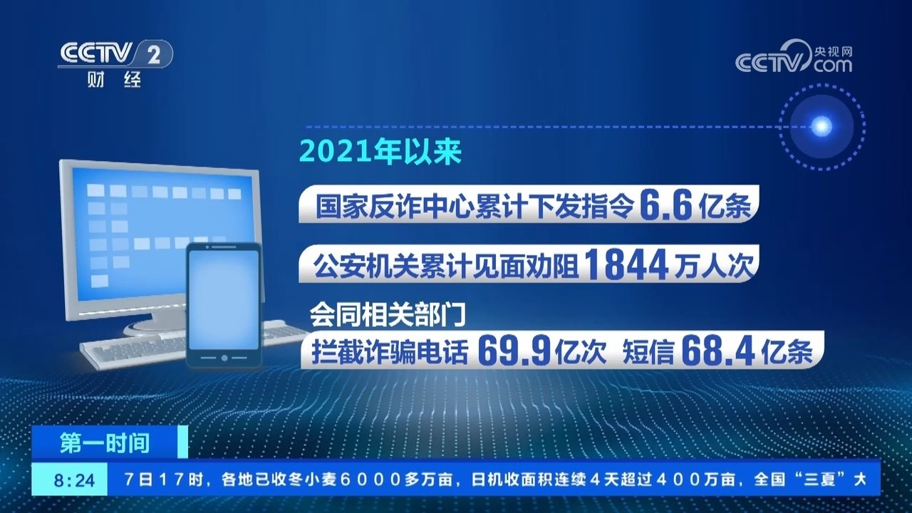 公安機(jī)關(guān)持續(xù)推進(jìn)預(yù)警勸阻和技術(shù)反制工作。2021年以來,國(guó)家反詐中心累計(jì)下發(fā)指令6.6億條,公安機(jī)關(guān)累計(jì)見面勸阻1844萬人次,會(huì)同相關(guān)部門攔截詐騙電話69.9億次、短信68.4億條,處置涉案域名網(wǎng)址1800萬個(gè),緊急攔截涉案資金1.1萬億元。
