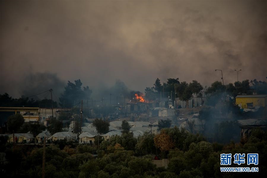 9月9日,希臘萊斯沃斯島的莫里亞難民營(yíng)發(fā)生火災(zāi)。新華社發(fā)(帕納吉奧提斯·帕拉斯卡斯攝)
