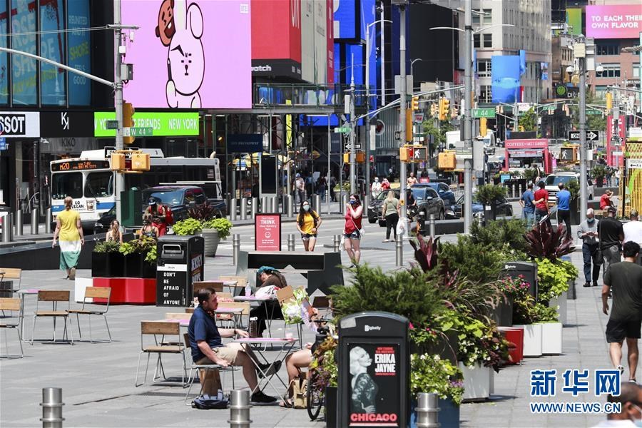 7月23日,在美國(guó)紐約,人們?cè)趹敉饩筒蛥^(qū)用餐。美國(guó)約翰斯·霍普金斯大學(xué)23日發(fā)布的新冠疫情最新統(tǒng)計(jì)數(shù)據(jù)顯示,美國(guó)累計(jì)確診病例超過400萬例。數(shù)據(jù)顯示,截至美國(guó)東部時(shí)間23日15時(shí)34分(北京時(shí)間24日3時(shí)34分),美國(guó)累計(jì)確診病例4007859例,累計(jì)死亡病例143846例。新華社記者王迎攝