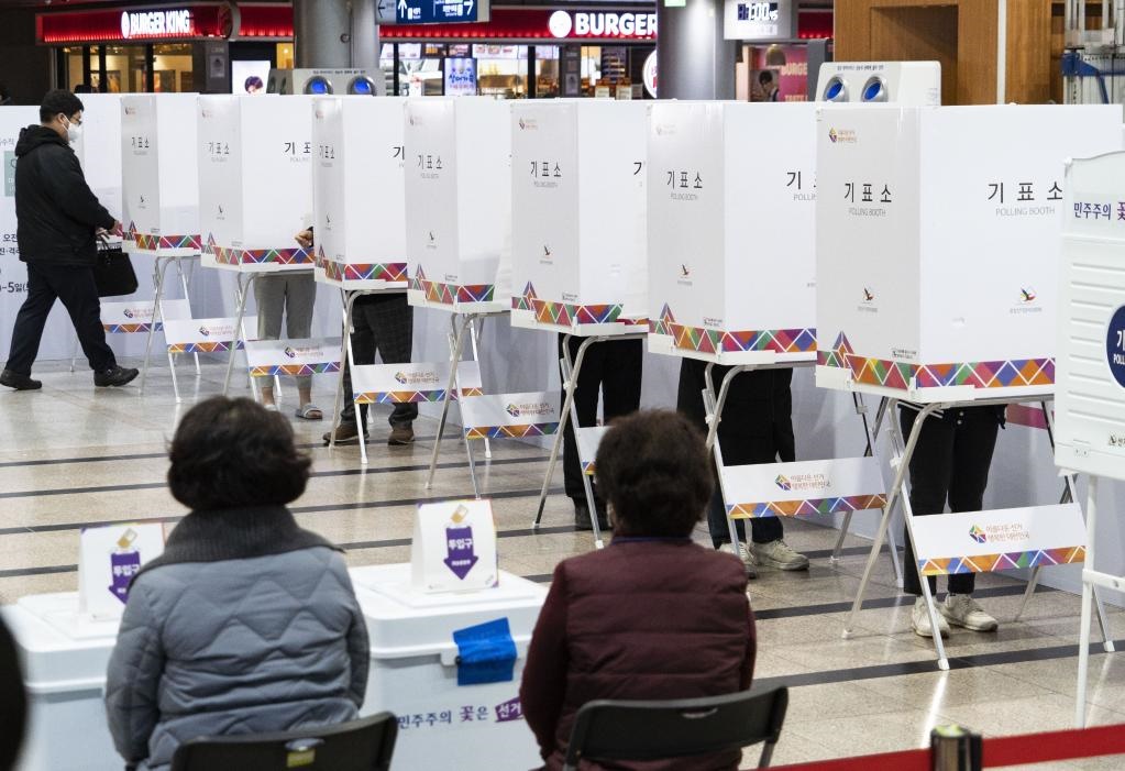 3月4日,選民在韓國(guó)首爾一個(gè)投票站填寫選票。(新華社發(fā),李相浩攝)