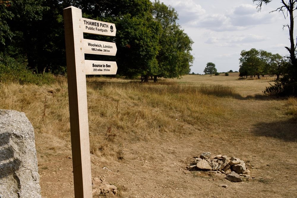 ↑這是8月14日在英國(guó)賽倫塞斯特附近拍攝的干涸的泰晤士河發(fā)源地和一塊寫有“泰晤士河起點(diǎn)”的石碑。