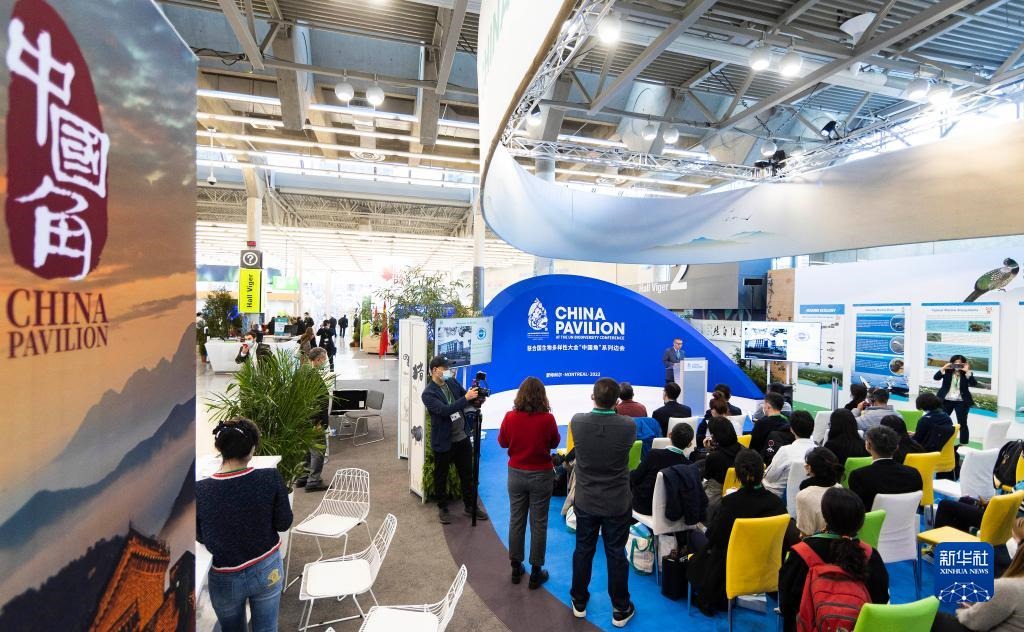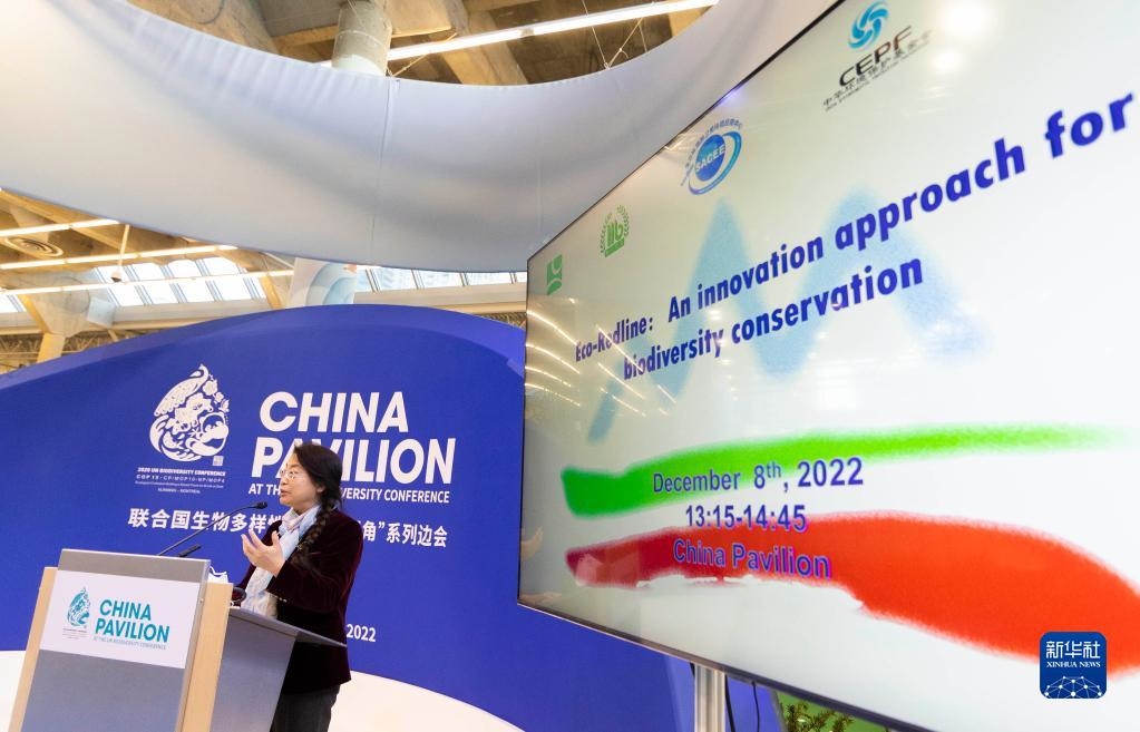 12月8日,在加拿大蒙特利爾舉行的《生物多樣性公約》第十五次締約方大會(COP15)第二階段會議上,中國角開展的一場邊會活動聚焦生態(tài)保護紅線。 新華社發(fā)(鄒崢攝)