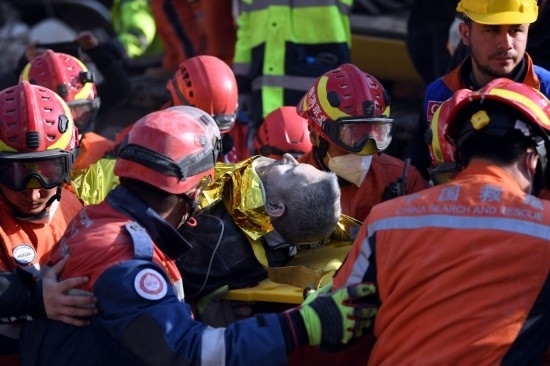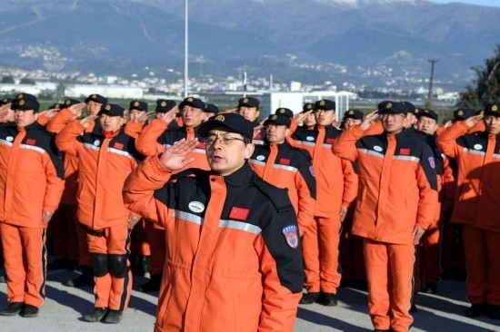 2月14日,中國救援隊(duì)與中國香港特區(qū)救援隊(duì)聯(lián)合編組在土耳其哈塔伊省安塔基亞市開展救援工作。