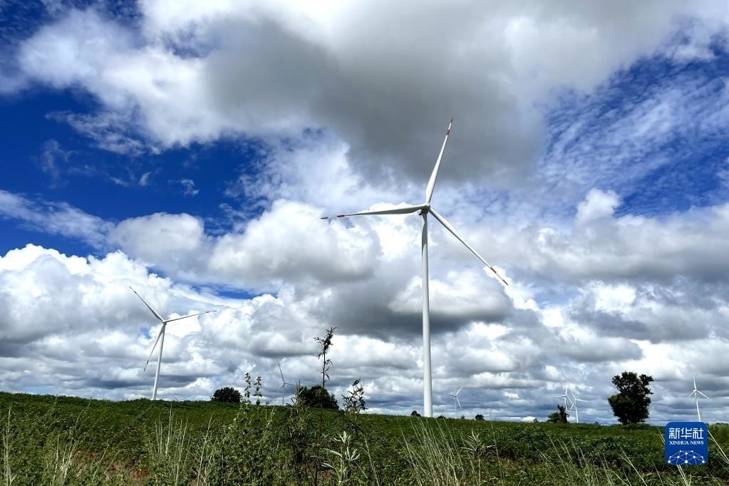 這是2022年10月4日在泰國猜也蓬府拍攝的由中國金風科技提供的風力發(fā)電機。新華社記者 宋宇 攝