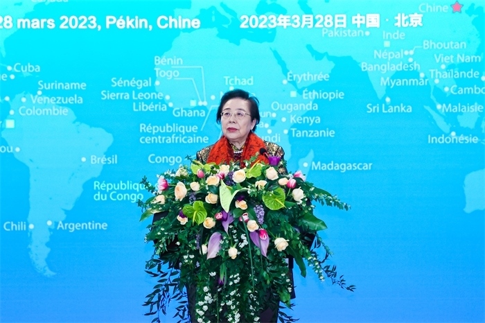 國(guó)際竹藤組織董事會(huì)聯(lián)合主席江澤慧致辭。國(guó)際竹藤組織供圖