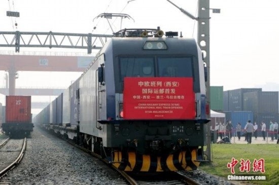 資料圖:2022年9月16日,中歐班列(西安)國(guó)際運(yùn)郵專線首次開(kāi)行,列車(chē)裝載著國(guó)際郵件、包裹、商業(yè)快件從西安國(guó)際港站駛出,經(jīng)阿拉山口口岸出境,將于約12天后抵達(dá)波蘭馬拉舍維奇,郵件再交由波蘭郵政轉(zhuǎn)運(yùn)到歐洲各國(guó)。 中新社記者 張遠(yuǎn) 攝