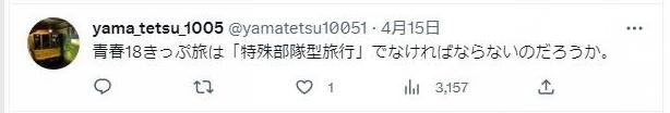 熟悉的場景勾起了一部分日本網(wǎng)友的回憶,“這是中國版的《周三怎么樣》吧(1996年在日本開播的一檔綜藝節(jié)目,其中的低預(yù)算且行程艱苦的旅游板塊很受關(guān)注)”“用青春18券(日本一種限定車型及使用時(shí)間的周游券)就得是‘特種兵式旅行‘才行吧”……