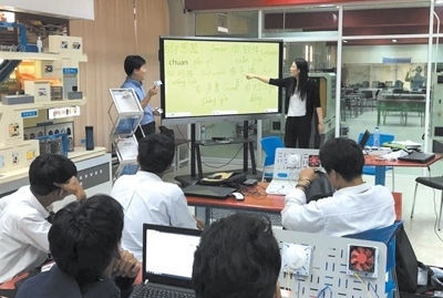 2016年3月,由天津渤海職業(yè)技術(shù)學(xué)院與泰國大城技術(shù)學(xué)院共同建設(shè)的全球首家魯班工坊正式揭牌,標(biāo)志著中國職業(yè)教育走出國門,與其他國家分享優(yōu)質(zhì)職業(yè)教育資源。泰國魯班工坊采用“學(xué)歷教育+職業(yè)培訓(xùn)”方式,匯聚先進(jìn)教學(xué)裝備,集中優(yōu)質(zhì)雙語教學(xué)資源,設(shè)立了自動化生產(chǎn)線教學(xué)區(qū)、仿生機(jī)器人學(xué)習(xí)體驗(yàn)區(qū)等15個教學(xué)實(shí)踐區(qū),讓學(xué)生們能夠更加直觀地在各種機(jī)器上操作演練。