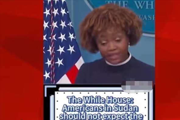 為證明自己的觀點(diǎn),安柏然在視頻中展示了幾個視頻片段。其中一個片段顯示,一名美媒主持人報(bào)道稱,美軍在夜間出動直升機(jī)將大約100名美國外交官及其家屬從蘇丹撤出。還有一段視頻顯示,白宮新聞秘書卡里娜·讓-皮埃爾近日在記者會上稱,美國駐蘇丹使館4月16日曾發(fā)布安全警告稱,由于喀土穆安全局勢存在不確定性且機(jī)場已關(guān)閉,美國公民此時不應(yīng)期待美國政府協(xié)調(diào)撤僑?!爱?dāng)務(wù)之急是,在蘇丹的美國公民要自行安排,在困難情況下確保自身安全。我們建議美國公民就地避難……”她稱。