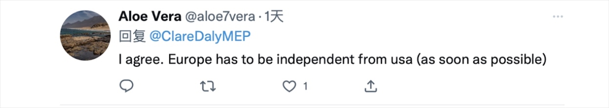 “我同意。歐洲必須從美國獨(dú)立出來(盡快)。”↓