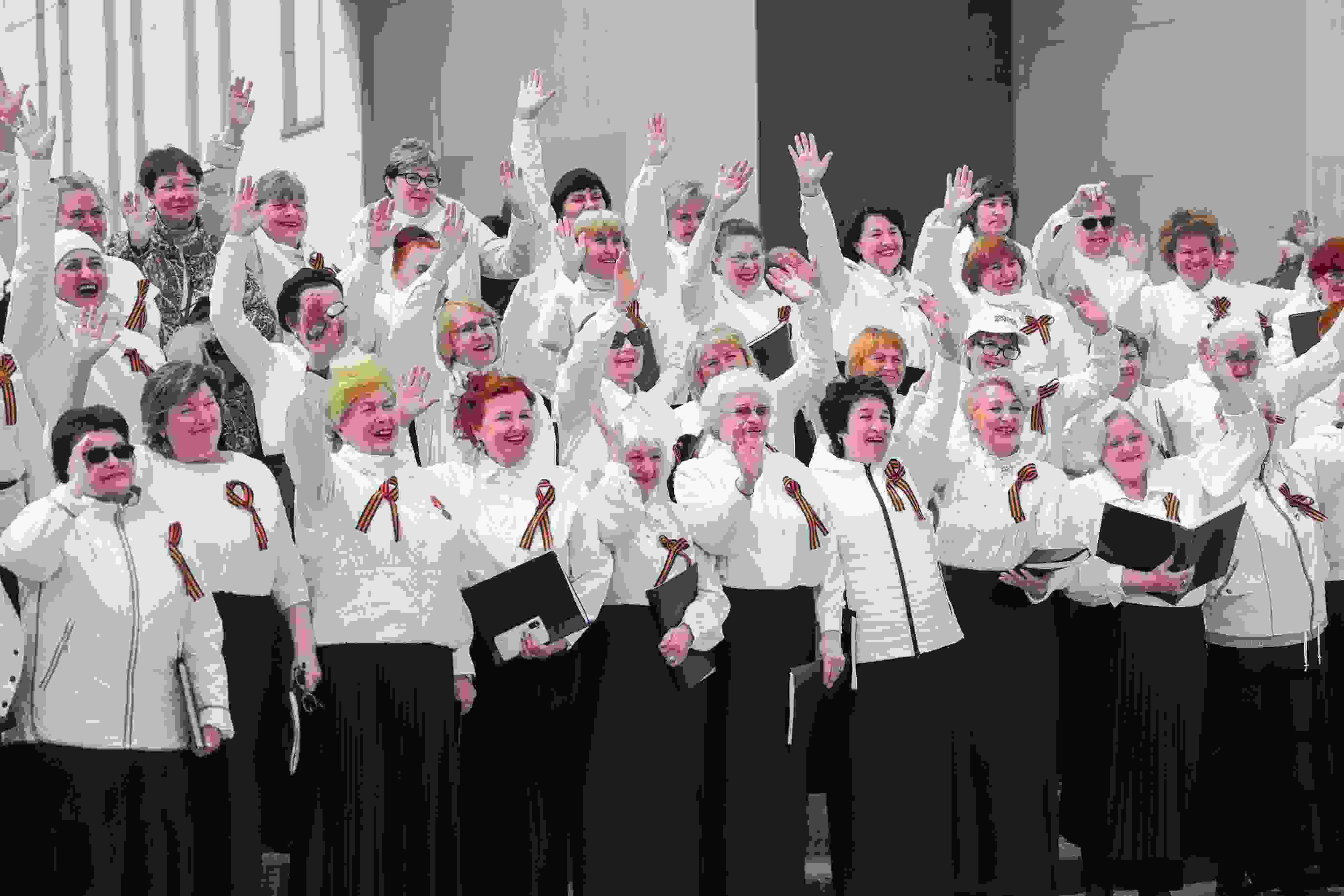 當?shù)貢r間2023年5月8日,俄羅斯莫斯科,合唱團在紀念二戰(zhàn)勝利78周年的音樂會上表演。 視覺中國