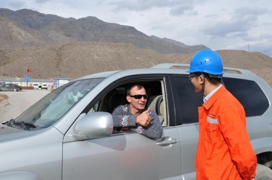 吉爾吉斯斯坦當(dāng)?shù)鼐用褚粮隊(duì)柛兄x中方筑路人員讓他們享受到了平坦的道路。