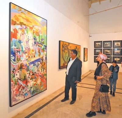 人們在埃及首都開羅參觀“藝匯絲路——中阿知名藝術(shù)家采風(fēng)作品展”。新華社記者 隋先凱攝