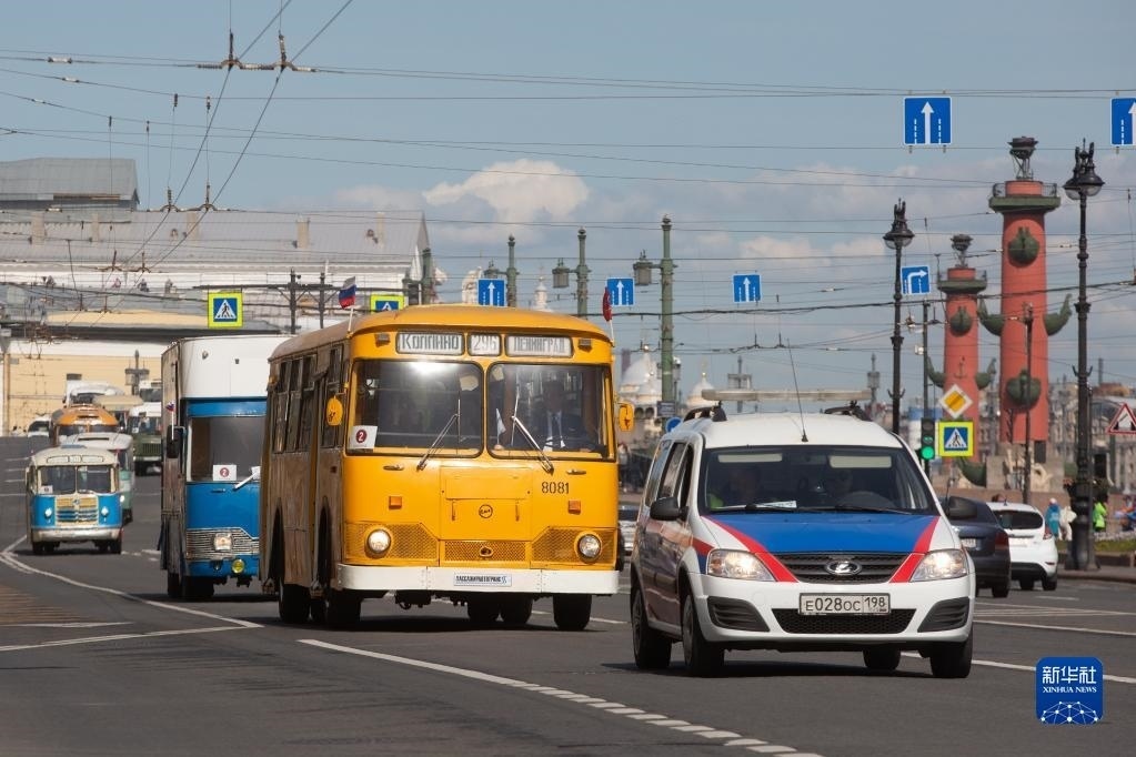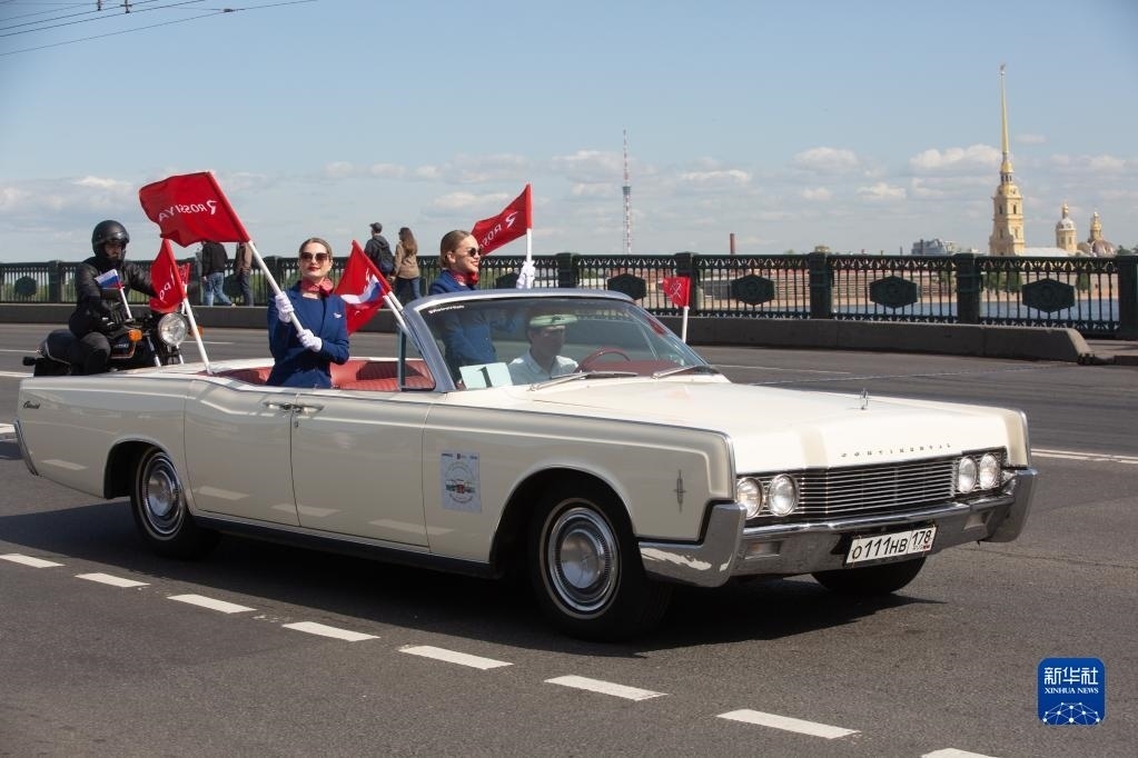 5月20日,老爺車在俄羅斯圣彼得堡街頭巡游。