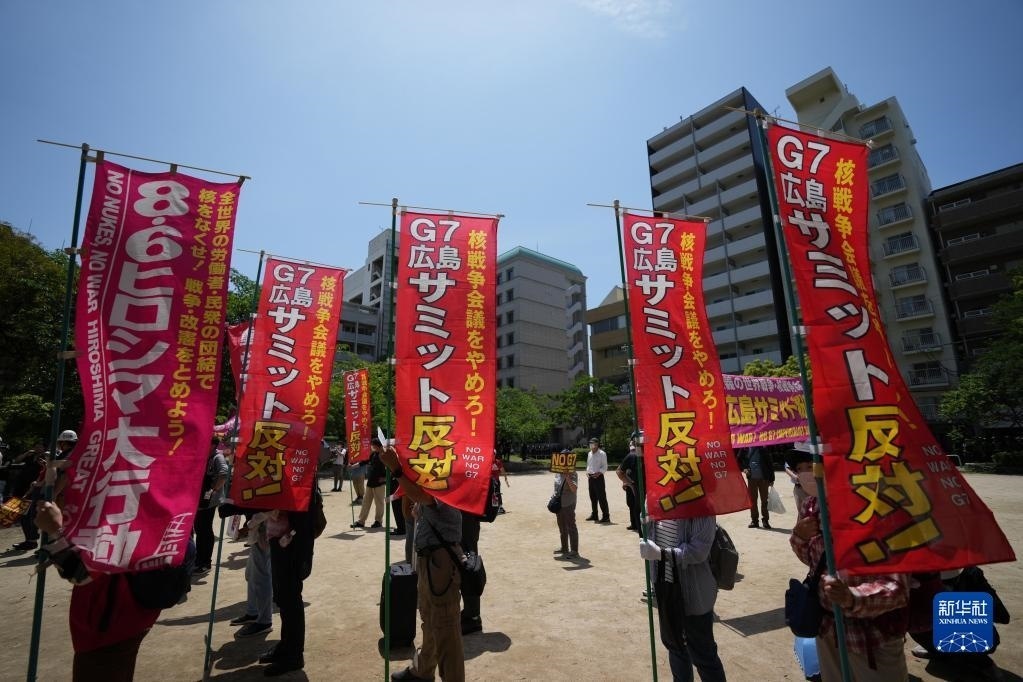 當(dāng)天,大批民眾再次在廣島舉行大規(guī)模集會游行,抗議七國集團(tuán)(G7)峰會舉行。