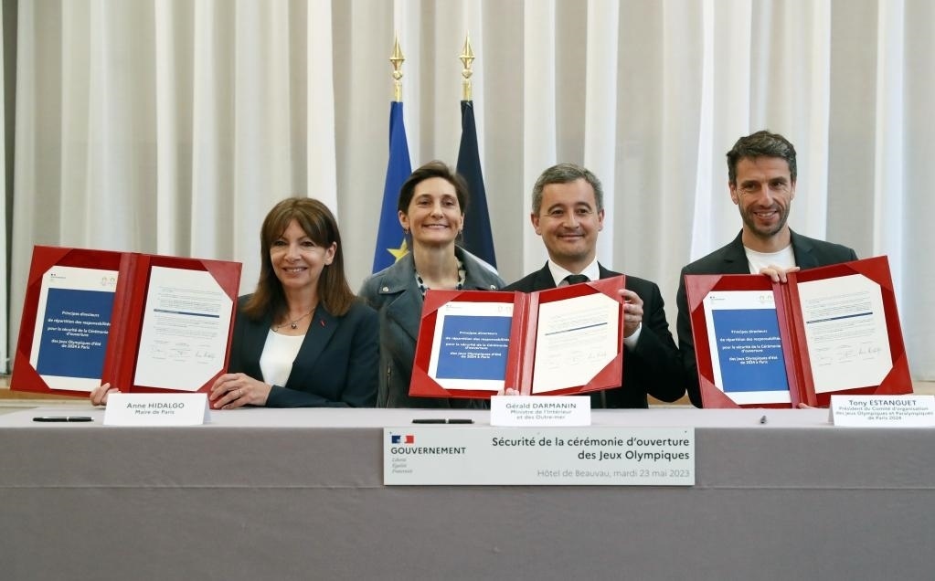 5月23日,為確保巴黎奧運(yùn)會(huì)“河上”開幕式安全順利舉行,法國內(nèi)政部、巴黎奧組委、巴黎市政府三方在巴黎簽訂協(xié)議,明確各自的安保職責(zé)。新華社記者 高靜 攝