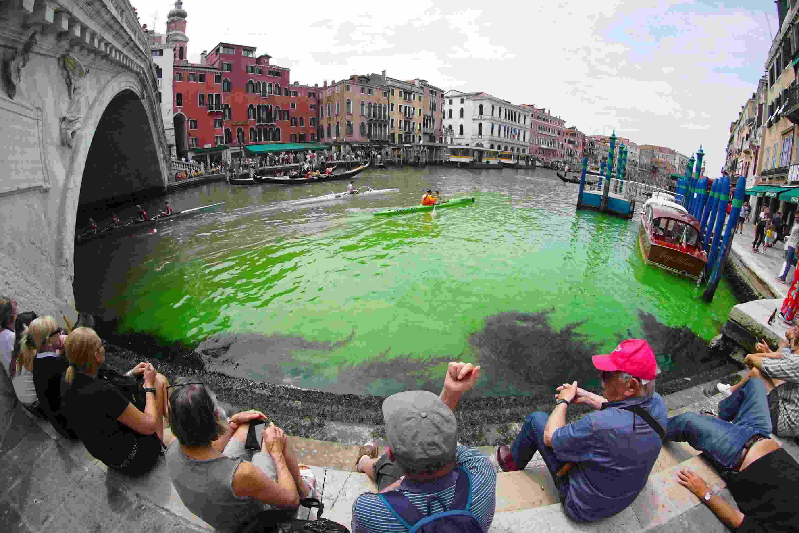 意大利威尼斯主河道部分水體變熒光綠色