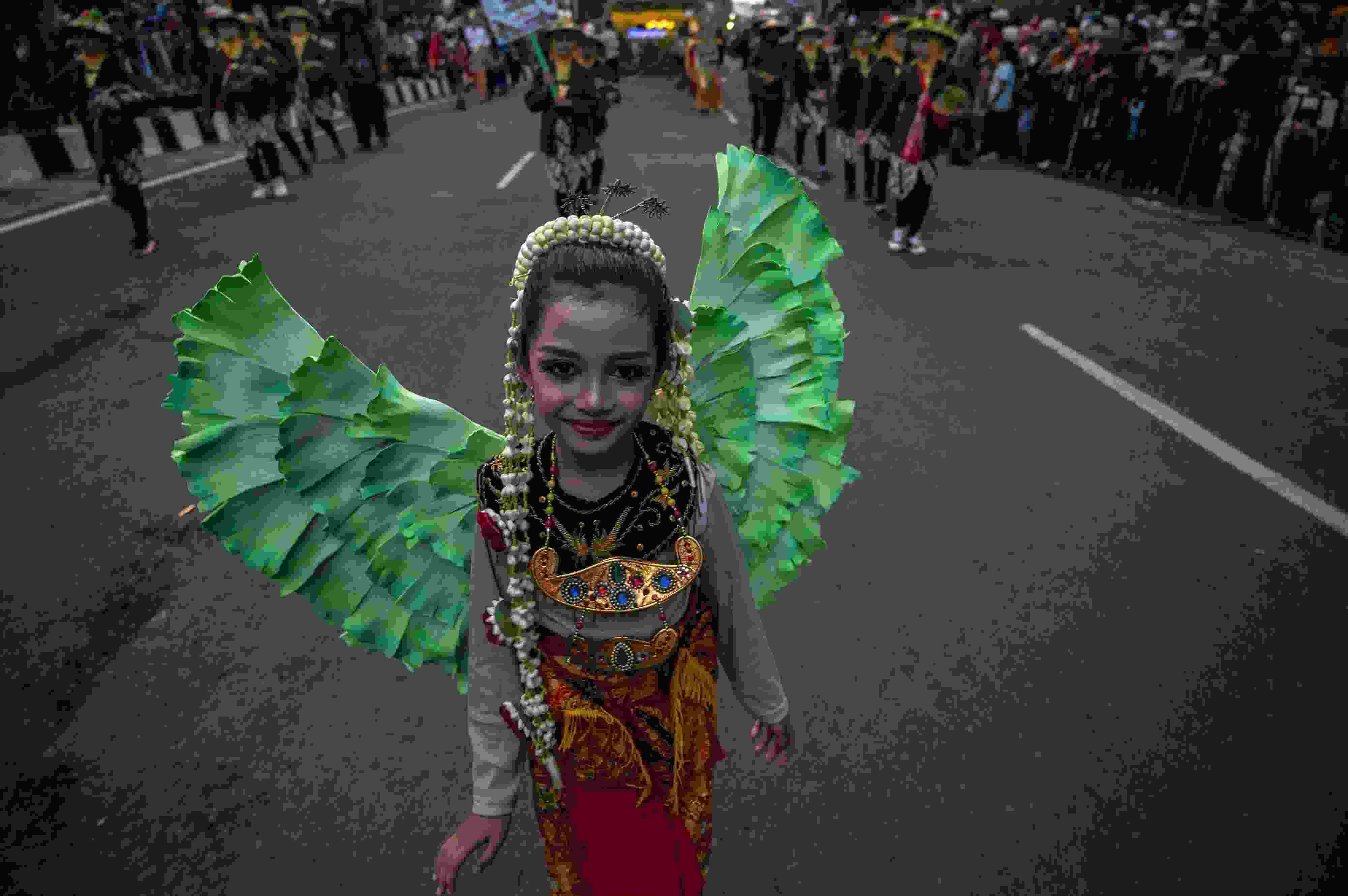 當地時間2023年5月27日,印度尼西亞泗水,表演者參加慶祝建城730周年的街頭游行。 視覺中國