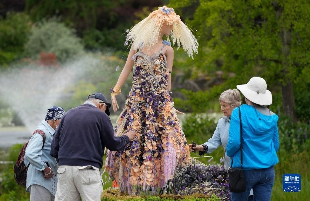 這是6月9日在加拿大溫哥華舉辦的“花卉城市之旅”花卉展上拍攝的花卉裝置藝術(shù)作品。新華社發(fā)(梁森攝)